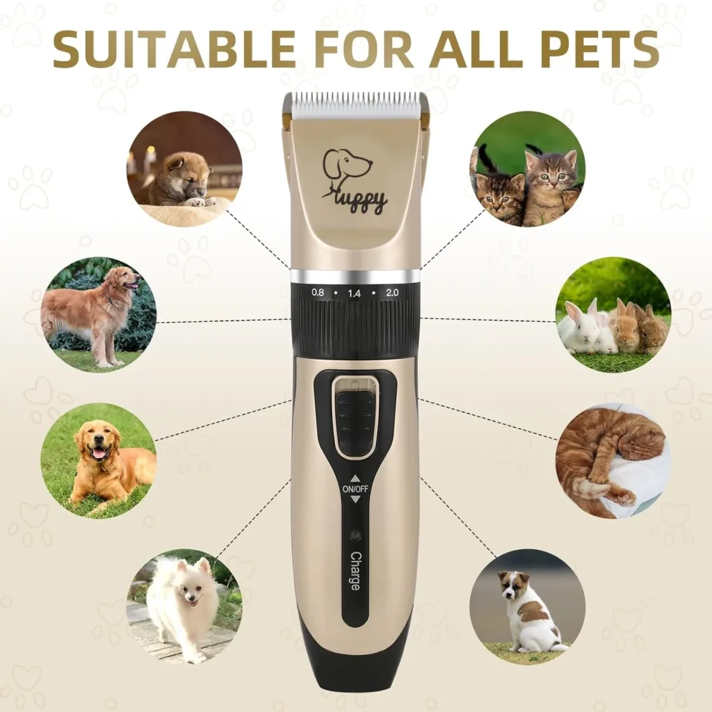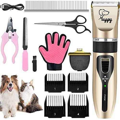Este kit de cortapelos para mascotas de 13 piezas es completo y de muy buena calidad.