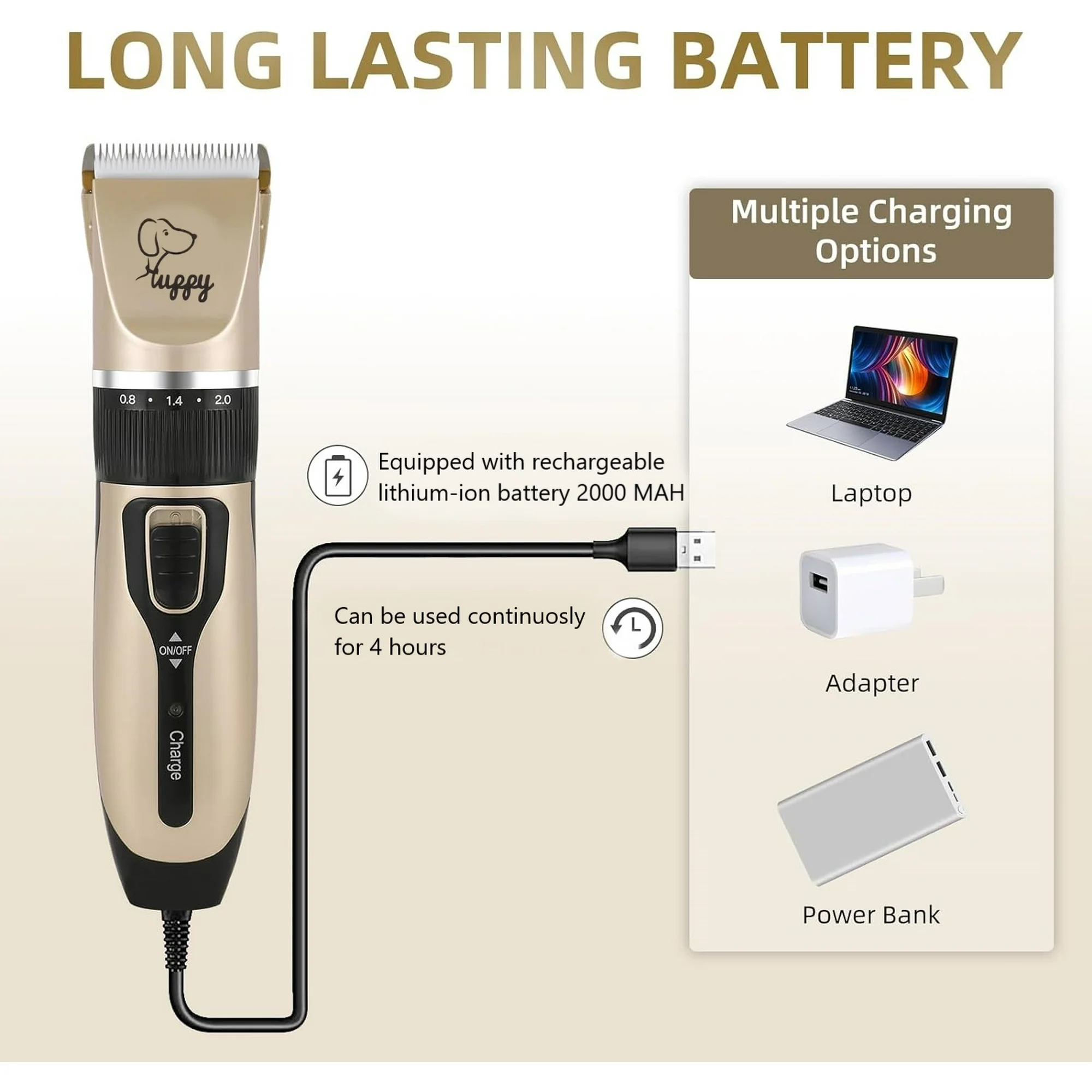 La bater¨ªa dura mucho tiempo, suficiente para arreglar a varias mascotas seguidas.