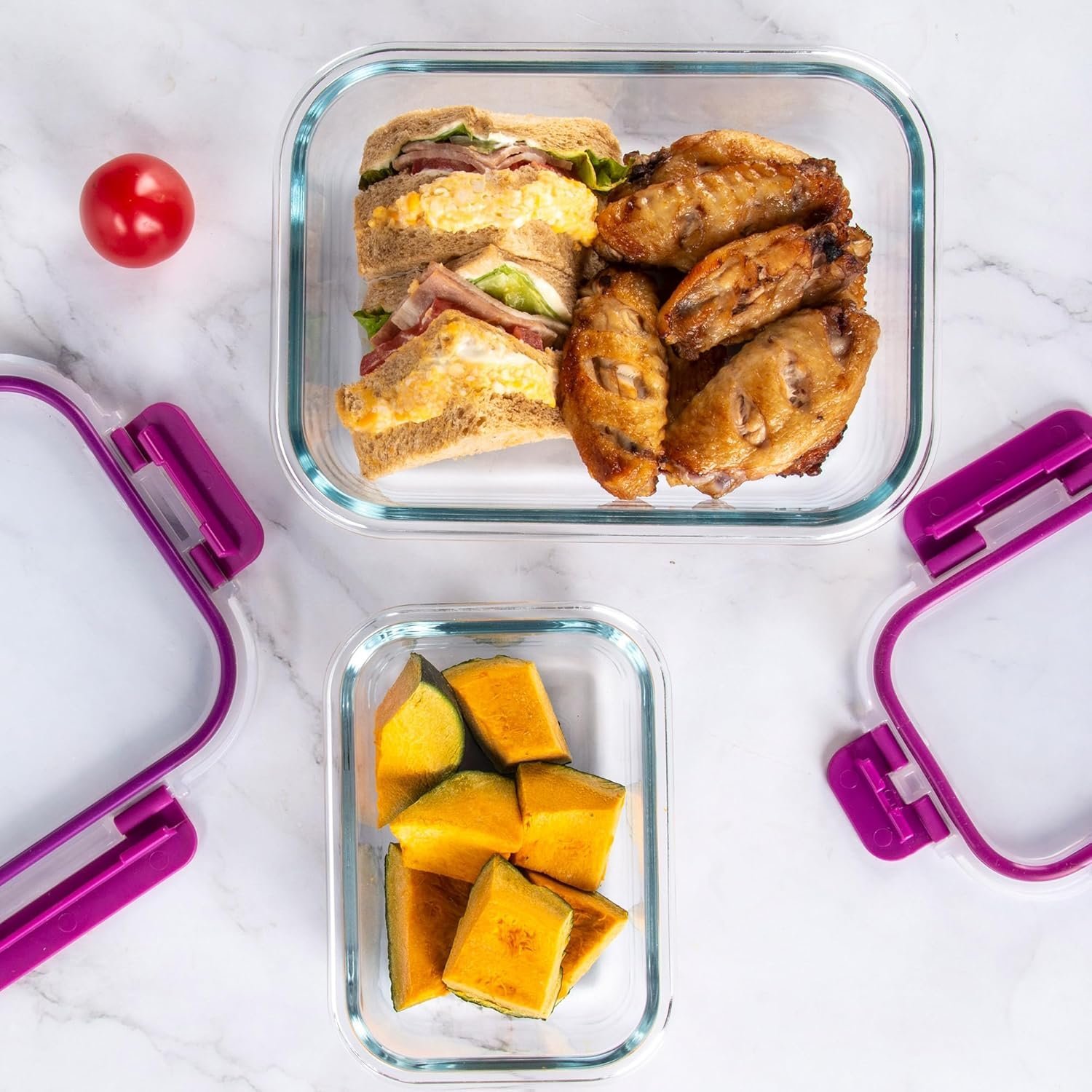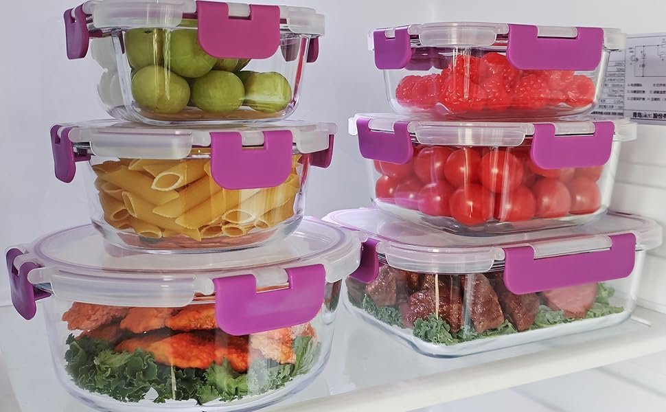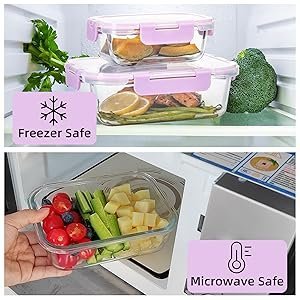 Nuestros recipientes de almacenamiento de vidrio están hechos de vidrio de borosilicato de alta calidad, que son aptos para microondas, puedes utilizarlos para almacenamiento en congelador, microondas (no las tapas) y lavavajillas.