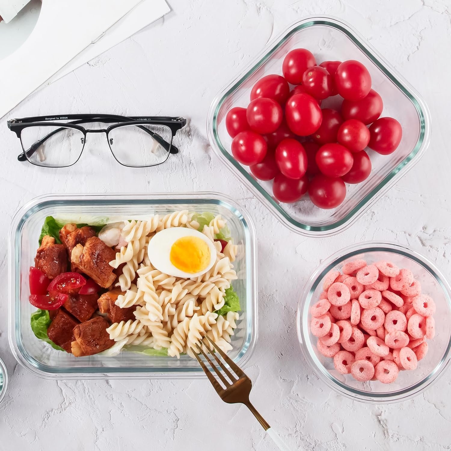 Multiusos: incluye 5 recipientes grandes de 32 onzas y 5 recipientes pequeños de 12 onzas para opciones de almacenamiento versátiles. Ideal para preparar comidas, sobras y almacenar varios alimentos para su uso en la cocina, la oficina o sobre la marcha.