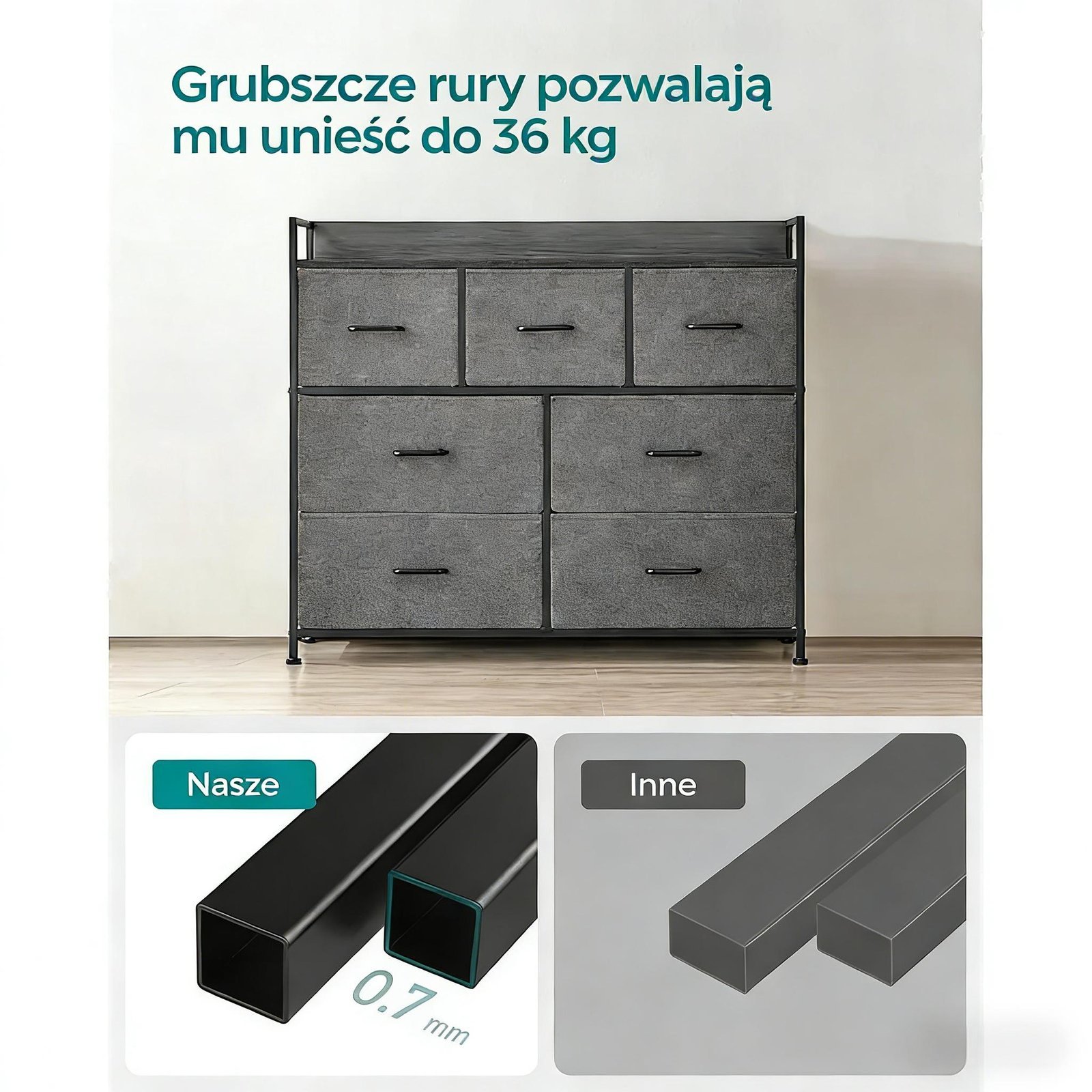 A storage dresser with 7 drawers, an accessory kit and detailed user manual for an easy assembly,