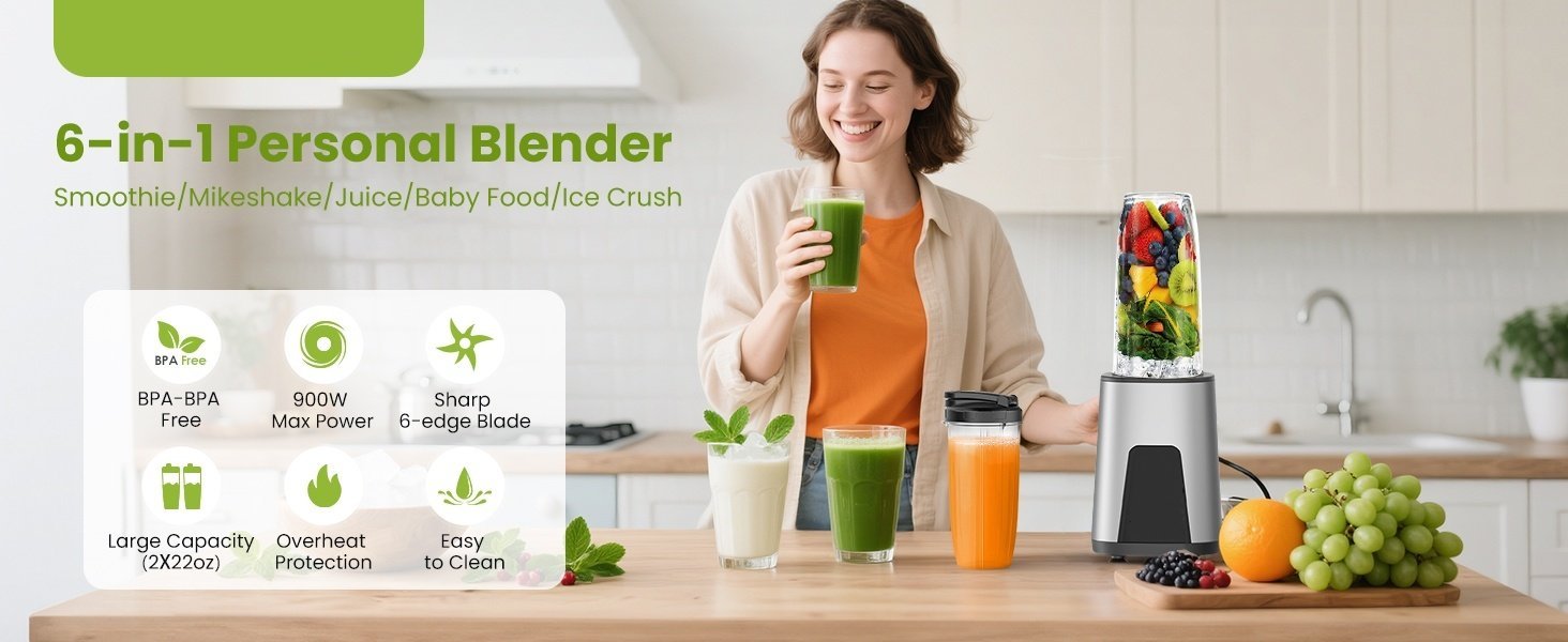 900W Motor Detachable Attachment Removable Blade Automatic Cleaning & Dishwasher Safe Portable Cups Easy to Use